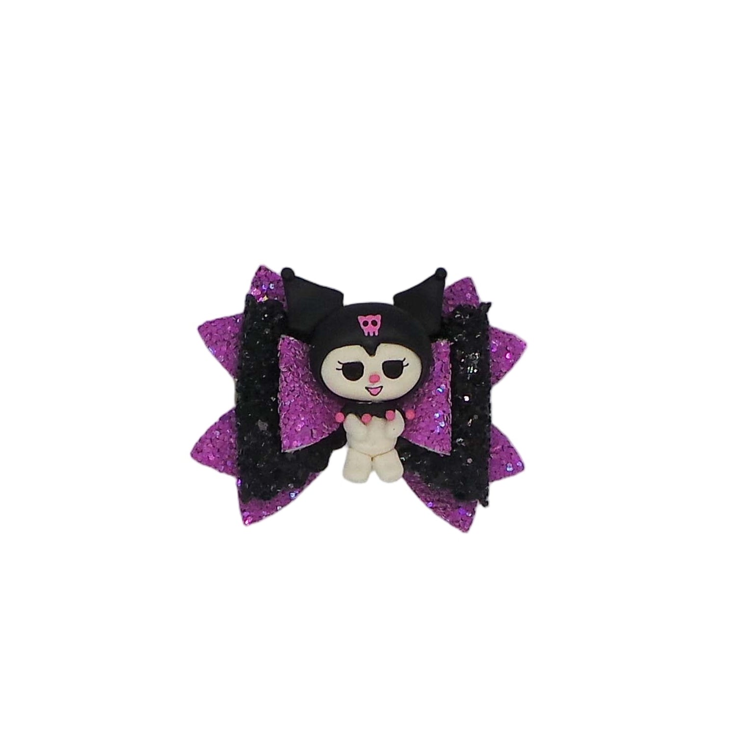 A HK Bunny Friend clay attached to chunky glitter and printed faux leather sheets.