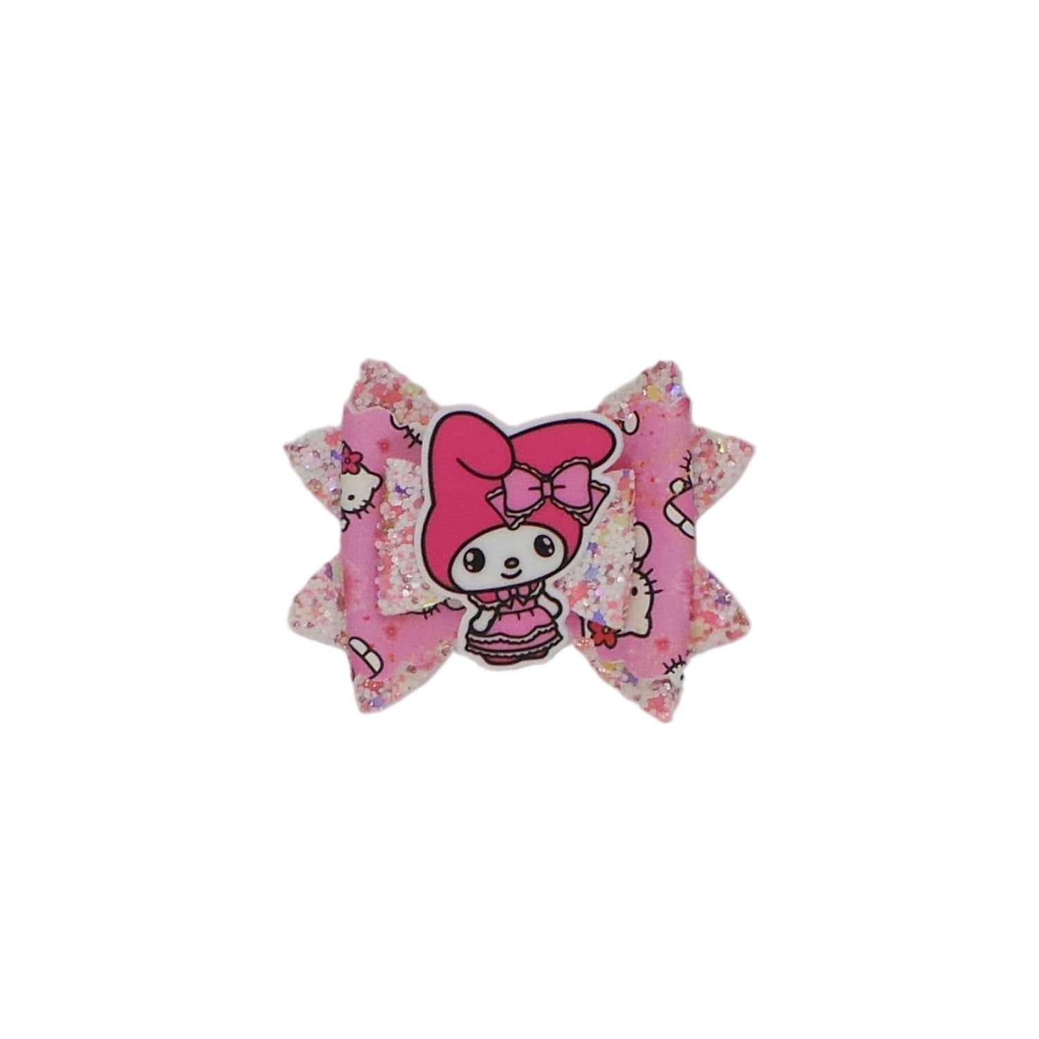 A cute My Mel embellishment attached to chunky glitter and printed faux leather sheets.
