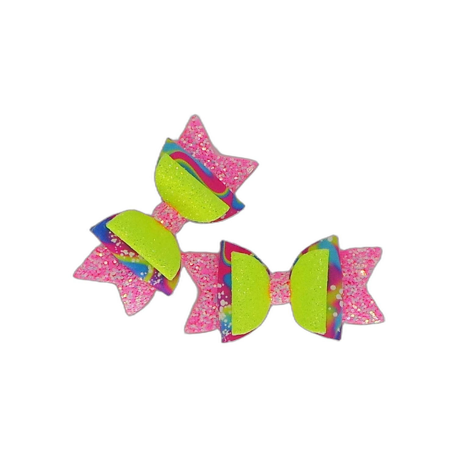 A 2 Pack 80s Baby Set of bows made from a mix of chunky glitter and printed faux leather sheets.