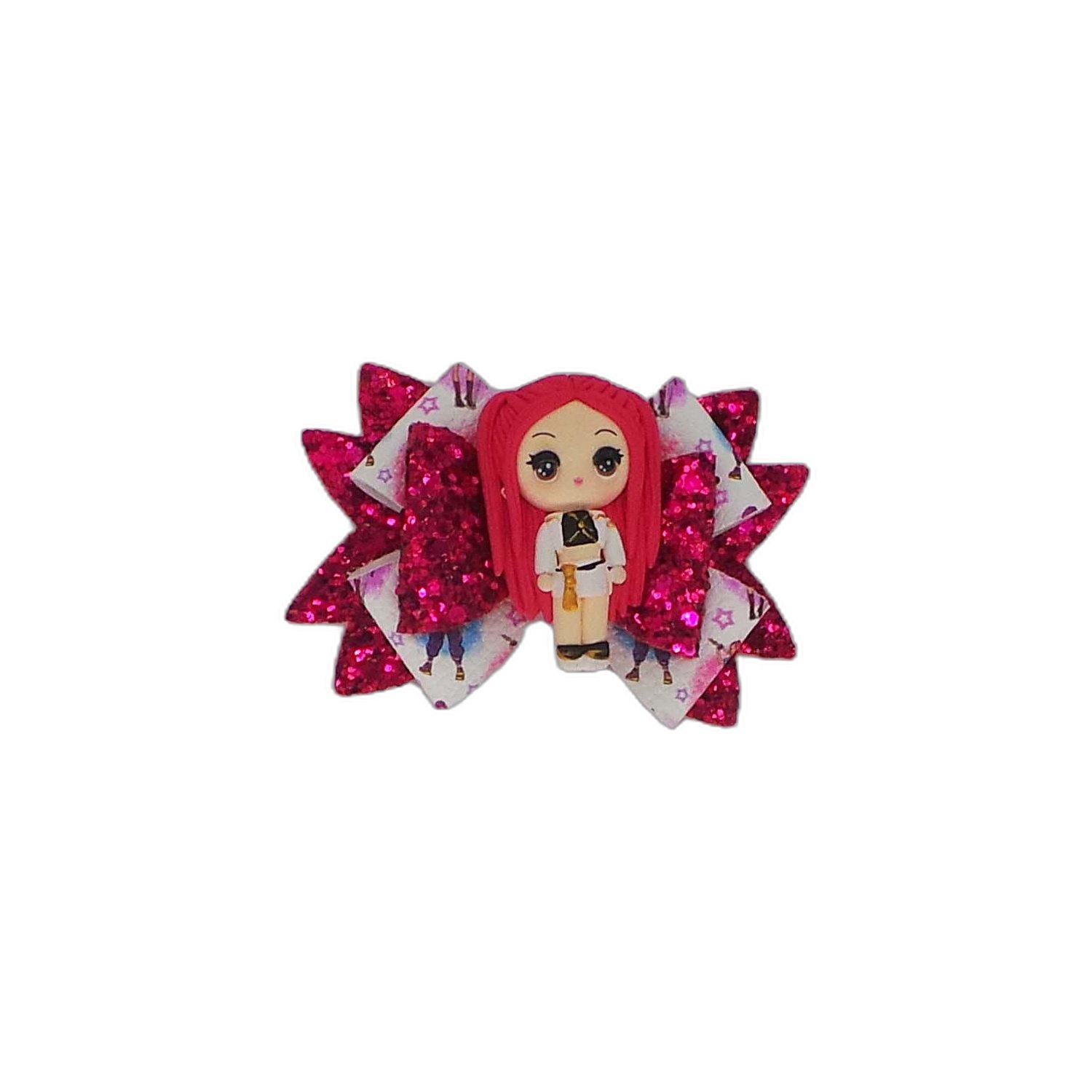 Kpop Mira clay attached to funky printed faux leather and chunky glitter faux leather.