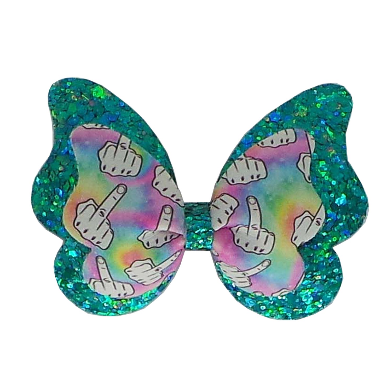 Adult butterfly bows are made from funky printed faux leather and chunky glitter faux leather sheets.