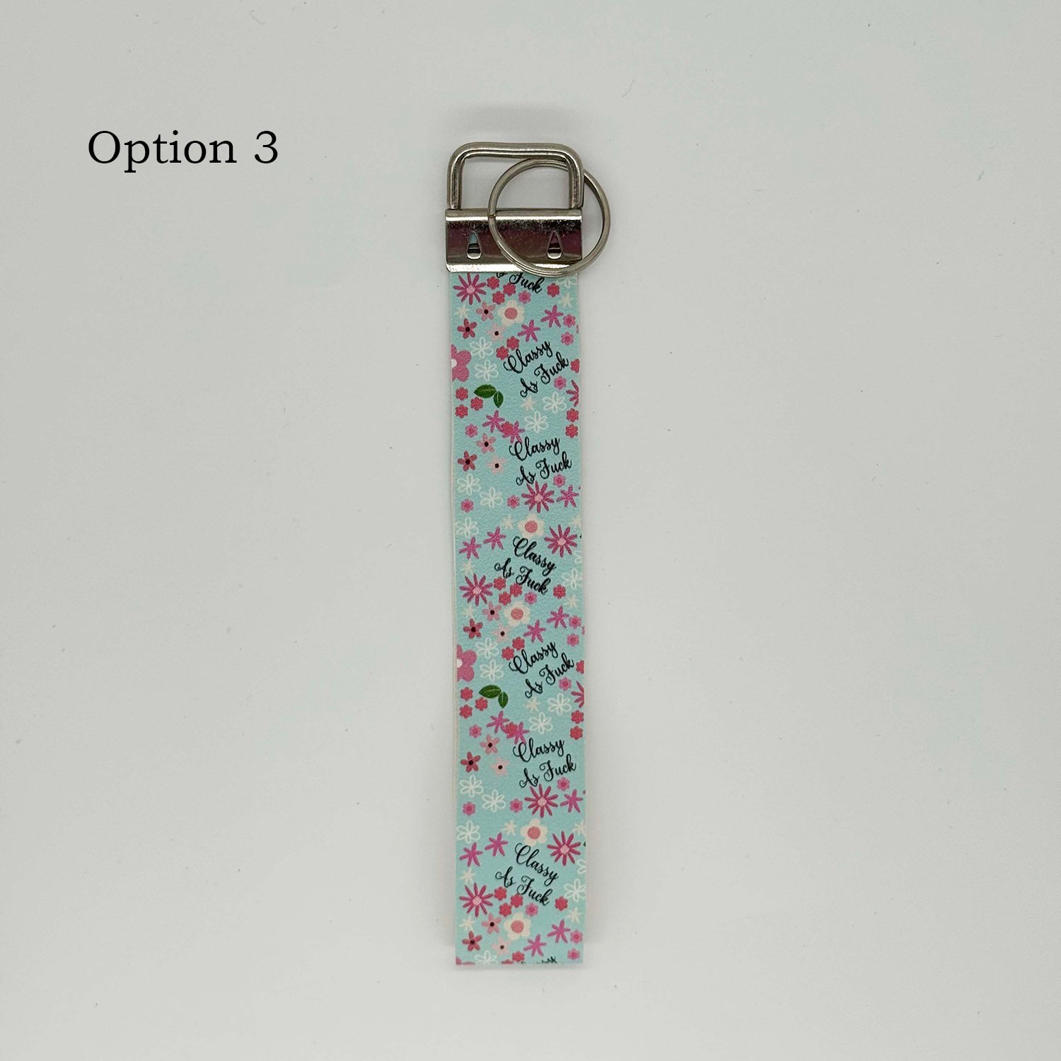 Made form high quality faux leather material, quality metal hardware and comes with a standard 2.5cm diameter keyring loop.