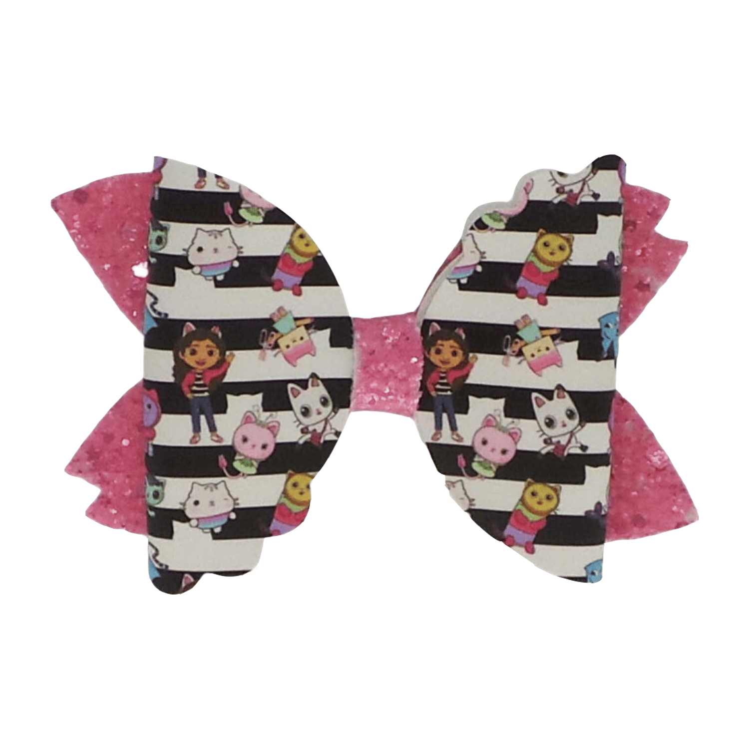 Big Stripe Gabby bows are made from funky printed faux leather and chunky glitter faux leather.
