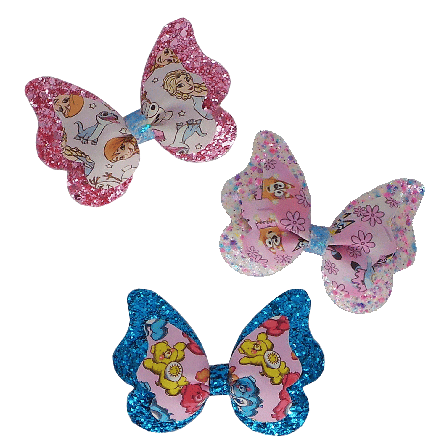 Cute butterfly bows are made from funky printed faux leather and chunky glitter faux leather sheets.