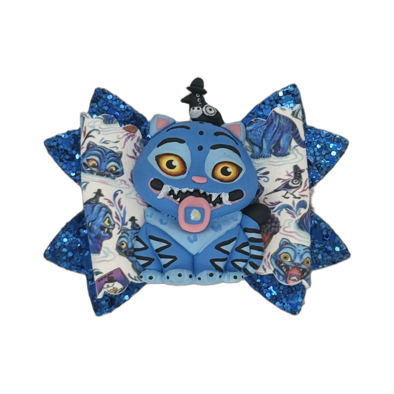 Kpop Derpy clay attached to funky printed faux leather and chunky glitter faux leather.