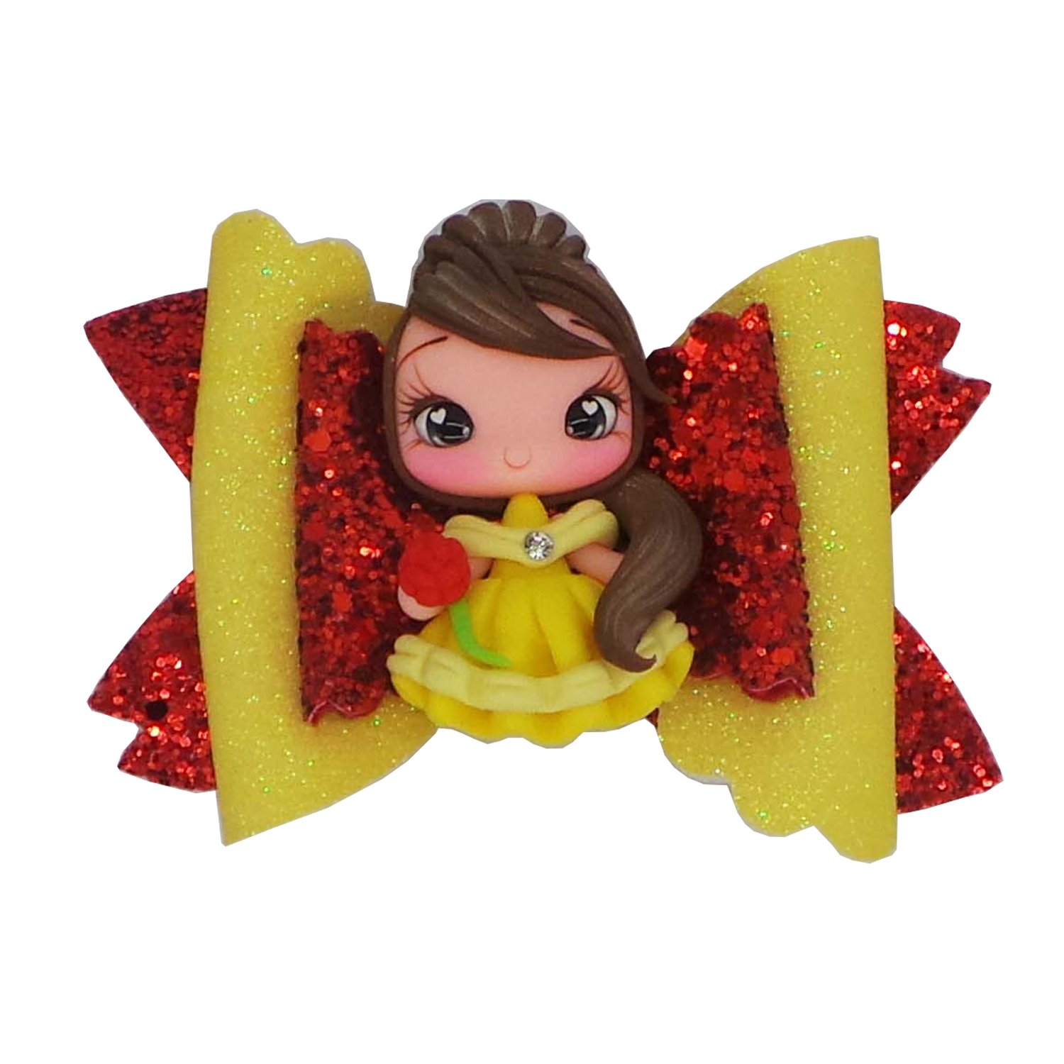 A beautiful Belle clay attached to chunky glitter and plain faux leather.