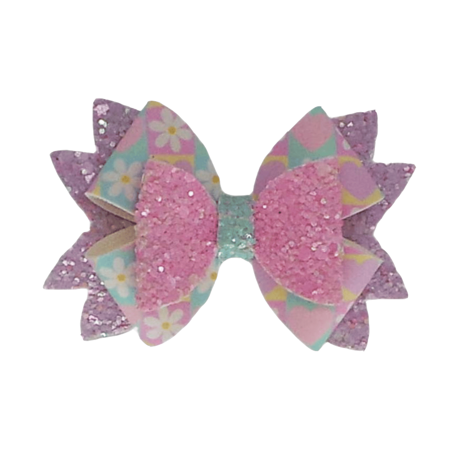 Pastel Patches Bows are made from funky printed faux leather and chunky glitter faux leather.